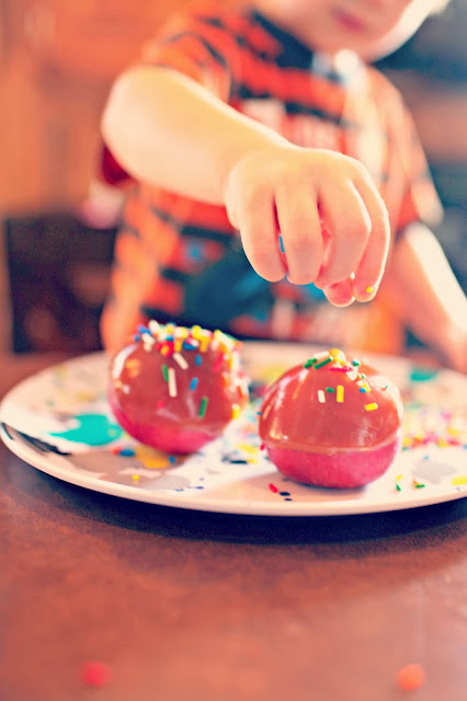 I gave him the sprinkles and explained that he needed to put them on the carmel.